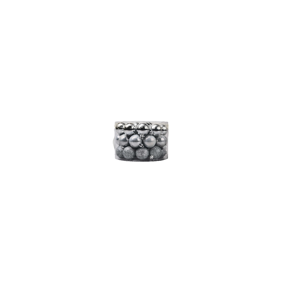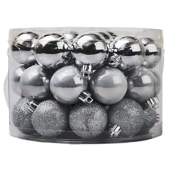 Set of 42 spheres for Christmas tree, silver color, with shiny, matte, and glitter finishes. Each sphere, with a diameter of 5 cm, is made of PVC. These spheres add a bright and modern effect to your Christmas tree, beautifully reflecting festive lights. Visit our online shop to explore other available colors of the same model and further personalize your festive space.