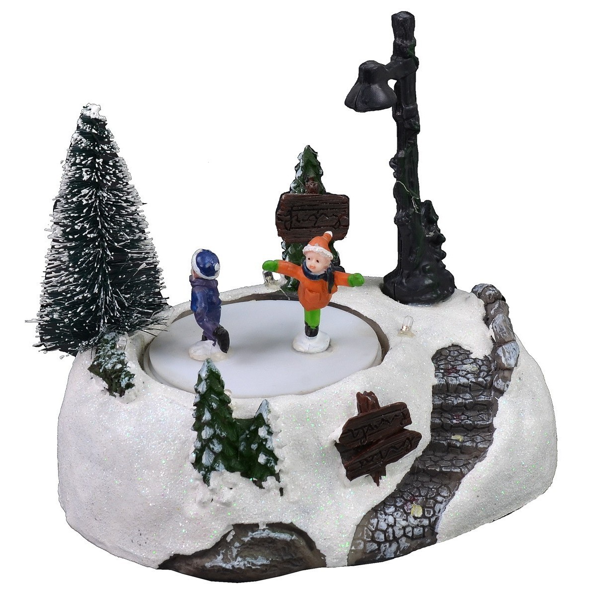 Scenografia natalizia cm 15,5x11x14 h raffigurante una pista da pattinaggio con 2 ragazzini che si divertono. L'articolo, realizzato in plastica e resina, prevede due modalità di funzionamento: possono essere attivati solo il movimento della pista e le luci, oppure è possibile attivare sia il movimento e le luci che la musica. Il prodotto è funzionante tramite batterie NON incluse nell'acquisto.