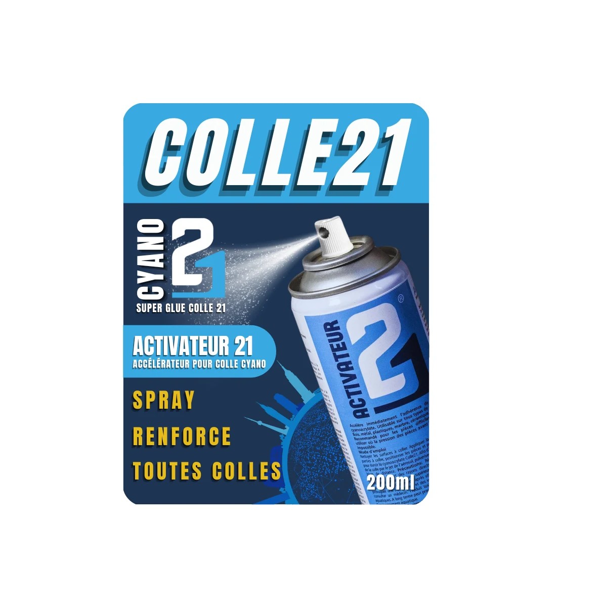 Activator Spray Colle21 for Cyanoacrylate Glue is a specially designed accelerator to speed up the bonding of cyanoacrylate glues, ensuring quick and effective results. Ideal for modeling, DIY, dental technicians, body shops, and other industrial applications, it allows for secure bonding without leaving visible residues.