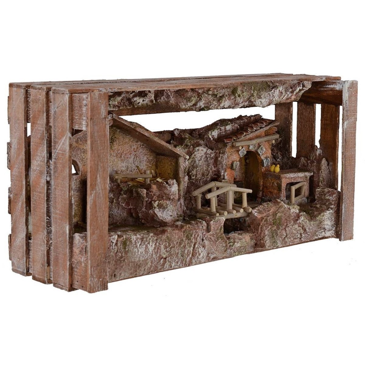 Single Presepe in its kind : as it is possible to note, the composition was created inside a fruit box. In the scenography there is an empty hut and, on the right, there is a shop of salumes and cheeses. The two structures are separated by a faux stream, but connected by a small wooden bridge. The surroundings are very characteristic and suggestive : the polystyrene, material of which the composition is composed, gives a realistic stone effect. In the hut, in particular, it is possible to place the Moranduzzo Landi Moranduzzo nativity of the series from 6 cm to compose a complete presepe. At its own choice, it is also possible to add characters in the shop of the same brand and series. Produced entirely in Italy by savvy artisan hands, they use polystyrene, wood and cork.