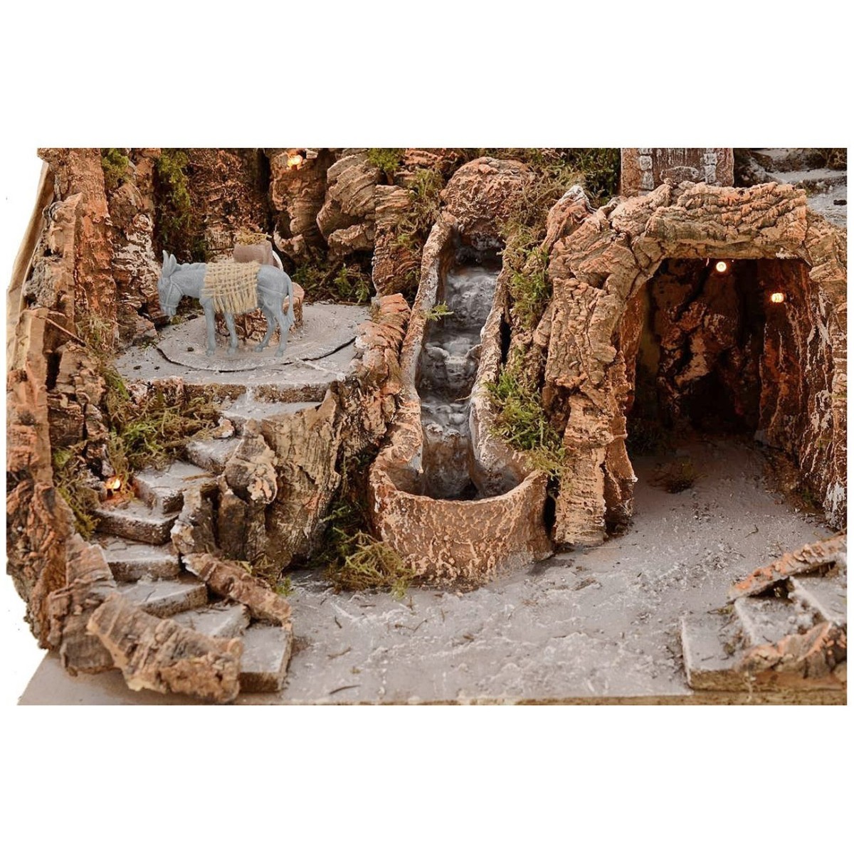 Handcrafted illuminated nativity scene, with waterfall complete with pump and donkey with rotating mill powered by electricity. It is possible to complete the Nativity Scene with Landi Moranduzzo statues with a height varying from 6 to 8 cm according to your tastes and preferences, playing with perspective: it is recommended to place 8 cm statues in the foreground, while 6 cm statues at the top. We also remind you that the Landi Moranduzzo series of 8 cm has a real height of 7 cm. In the related products, you can view some of the recommended products.
