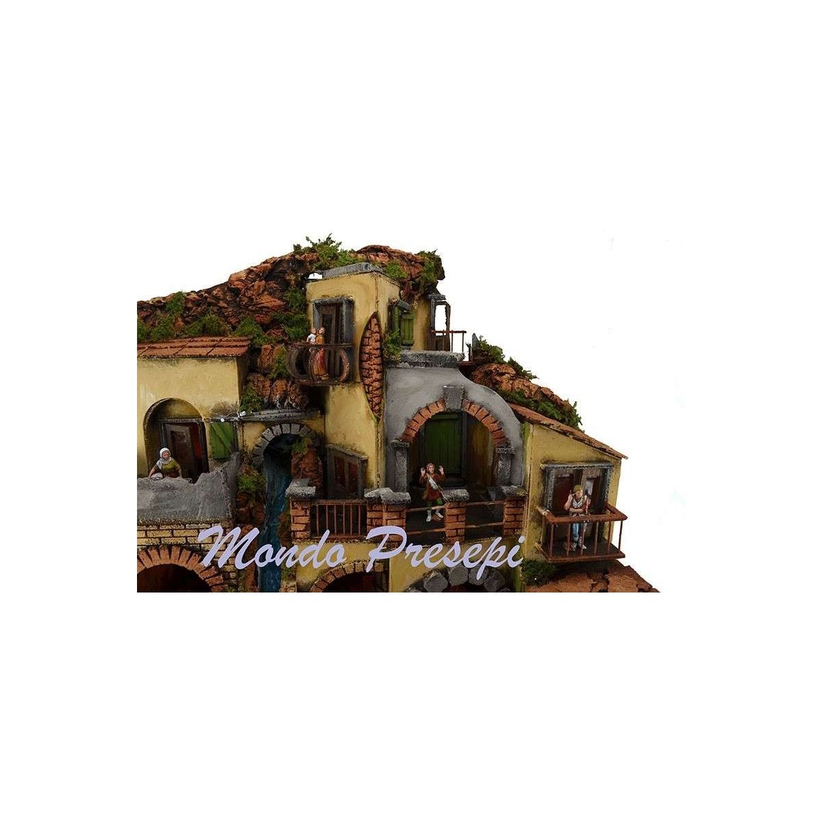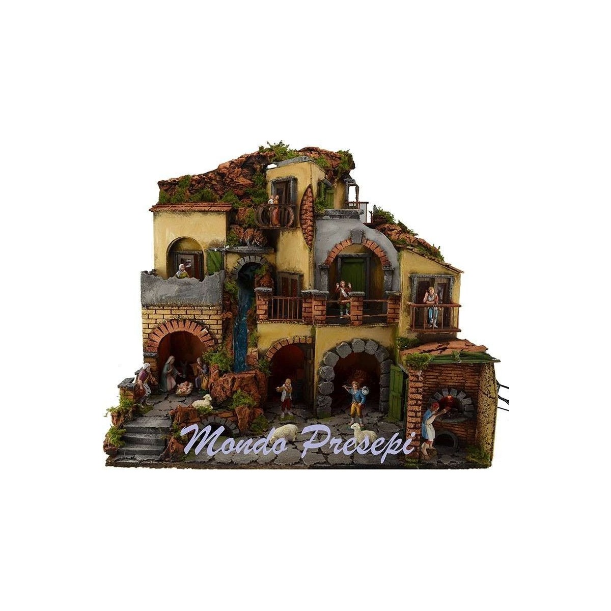 The crib of wood and cork, lit with a waterfall running at the current, full of statues and nativity series Landi 10 cm.