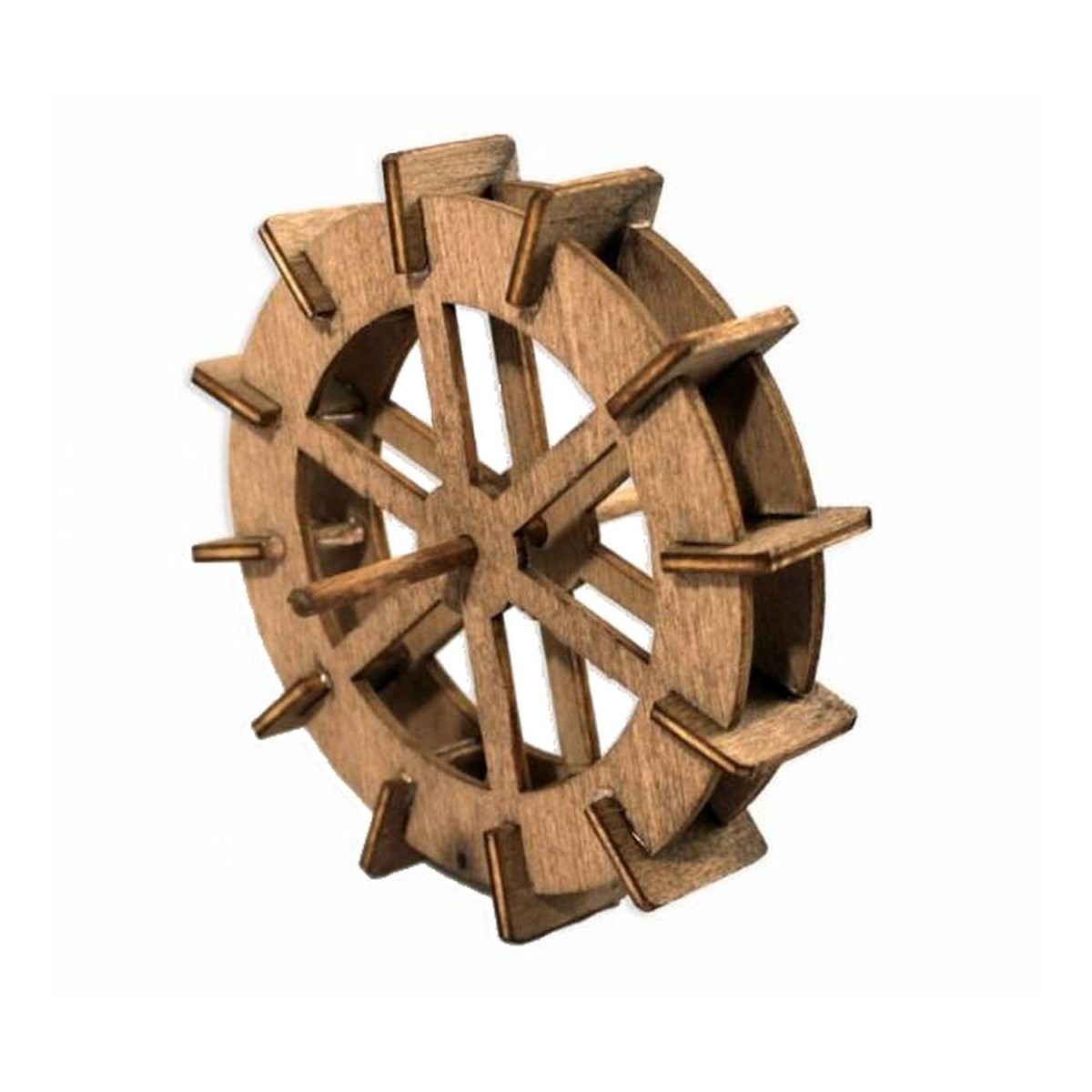 Wheel for wooden water mill treated with central pivot in metal, ideal to create the Presepe do by you. If fixed to the pivot the wheel is pushed from the water that falls on the blades, this movement can be generated by a pump (available in related products), or with the wheel locked it will be enough to connect a motoridant (a 10 laps per minute) is recommended.