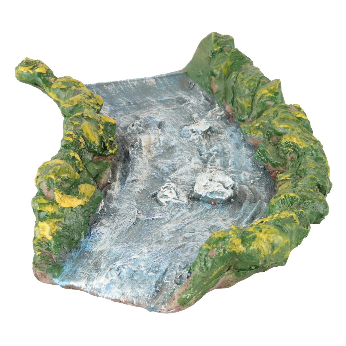 Fiume impermeabile, in resina, con curva a destra. Si consiglia l'utilizzo per la creazione di corsi d'acqua fai da te. L'articolo è stato realizzato a mano da artigiani italiani. Nei prodotti correlati, qui sotto, è possibile trovare tutti gli accessori della stessa linea per completare l'opera.