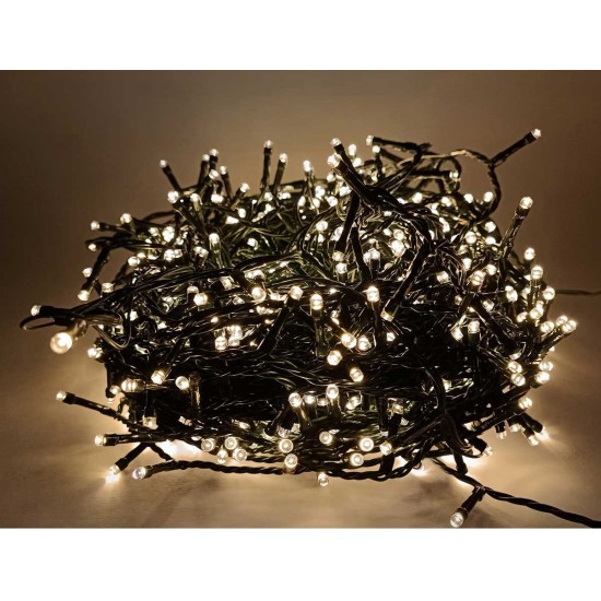 Lighting chain with 240 warm white LEDs, featuring memory light effects, ideal for outdoor and indoor environments.