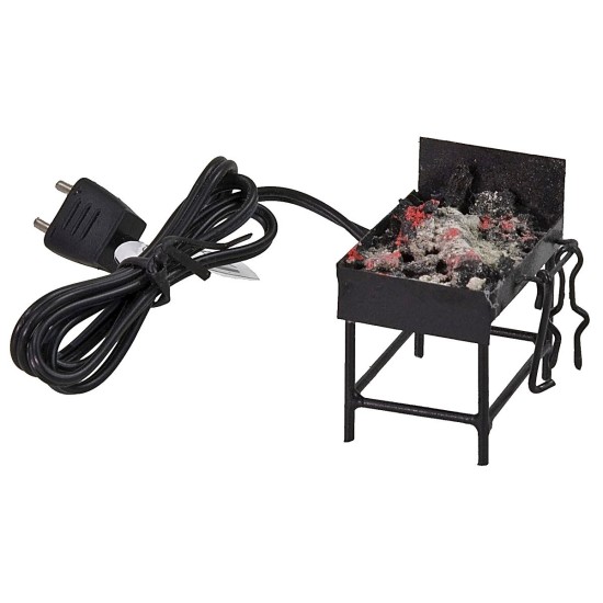 Fucina per fabbro funzionante a bassa tensione 3,5v con led tremolante che simula l'effetto braci e due pinze appese sul lato. L'articolo è consigliato per statue di altezza 8-10 cm ed è completo di spinetta, sarà a discrezione dell'acquirente scegliere se utilizzare il trasformatore o il portapile per farlo funzionare. Gli accessori necessari all'azionamento non sono compresi, ma sono disponibili nei prodotti correlati sotto la tabella.