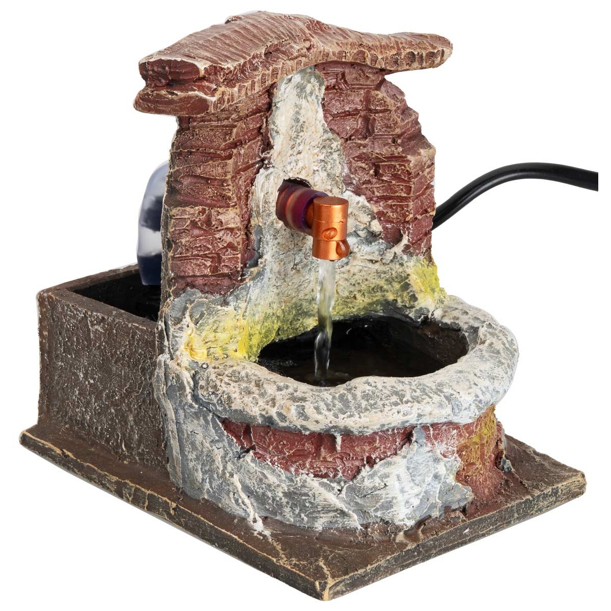 Fountain with round resin basin, working, dimensions 12x9x11.8 cm h