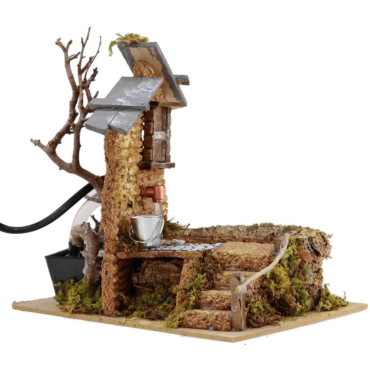 Fountain for complete running pump presepe at current, made in wood, cork and musk.