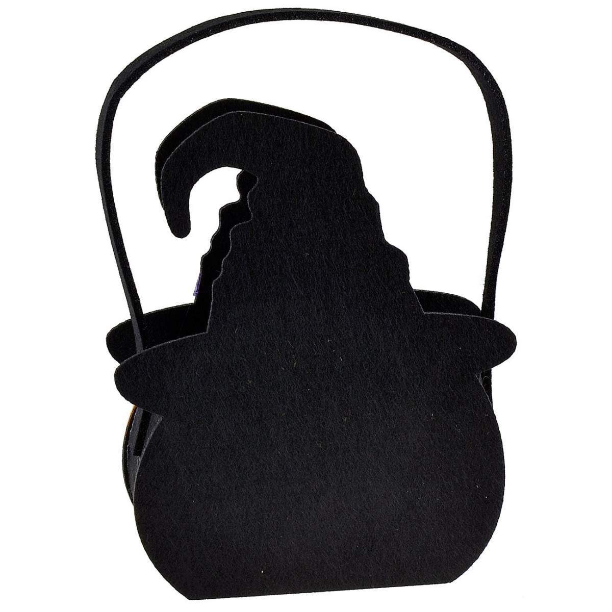 Felt basket with witch pumpkin to collect sweets on Halloween evening.