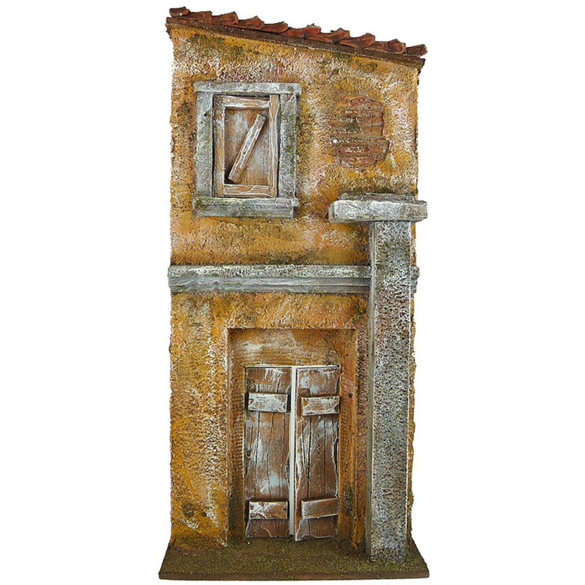 Get home for presepe in the classic Popolare style : on the ground floor you find the semi-open front door, to your right a pillar ; while on the upper floor a wooden window. The roof is composed of coppi in terracotta. Artisanal article made in polystyrene, wood and terracotta ; recommended for statues 10 cm.
