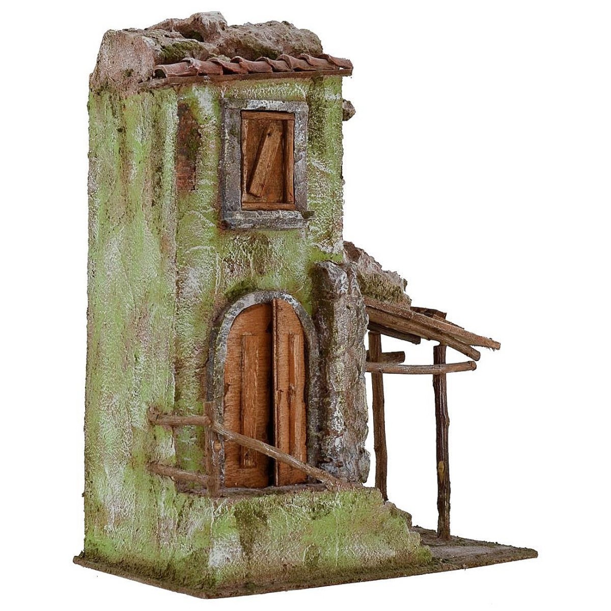 The rustic house for Presepe in classic Popolare style : on the ground floor is the semi-open double-open front door and on the right a wooden porticate, on the upper floor we find a window with anta in enclosed wood. The roof is composed of coppi in terracotta. Artisanal article made in polystyrene, wood and terracotta ; recommended for statues 10 cm.
