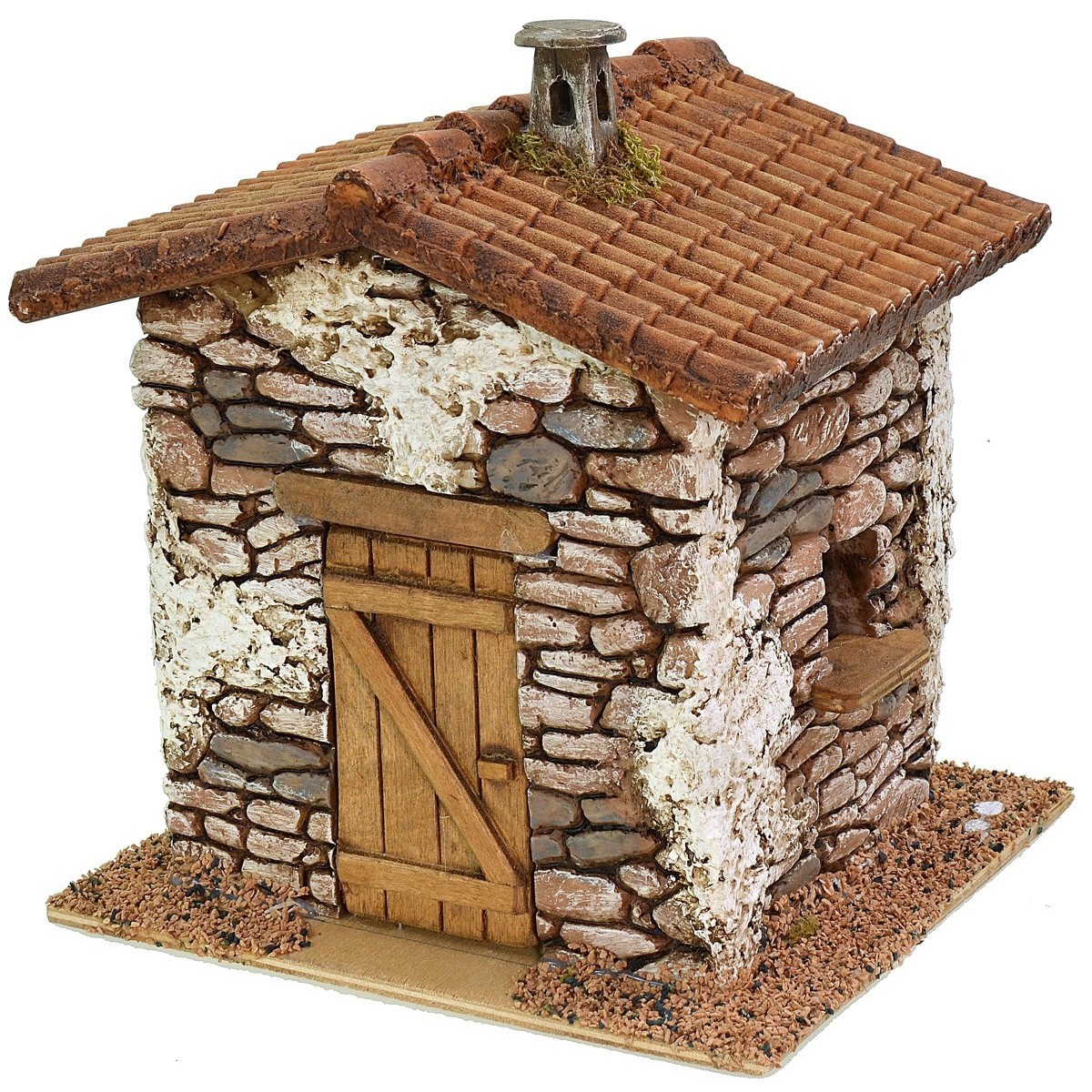 Casa in resina dall'effetto pietra ben rifinita, caratterizzata da un portone in legno apribile e chiudibile, due finestrelle con grata e davanzale in legno, ed un camino. Il tetto è realizzato in resina e risulta molto realistico. Il prodotto è consigliato per statue di altezza 10 h cm in base ai propri gusti e preferenze. Essendo il portone apribile e le finestre aperte, è consigliato, inoltre, illuminare l'interno con delle luci a proprio piacimento, aumentando la suggestività del prodotto, disponibili e visionabili nella seguente categoria: https://www.mondopresepi.com/it/116--illuminazione-interna-case .Articolo realizzato e dipinto a mano interamente in Italia da sapienti mani artigiane, utilizzando la resina ed il legno.