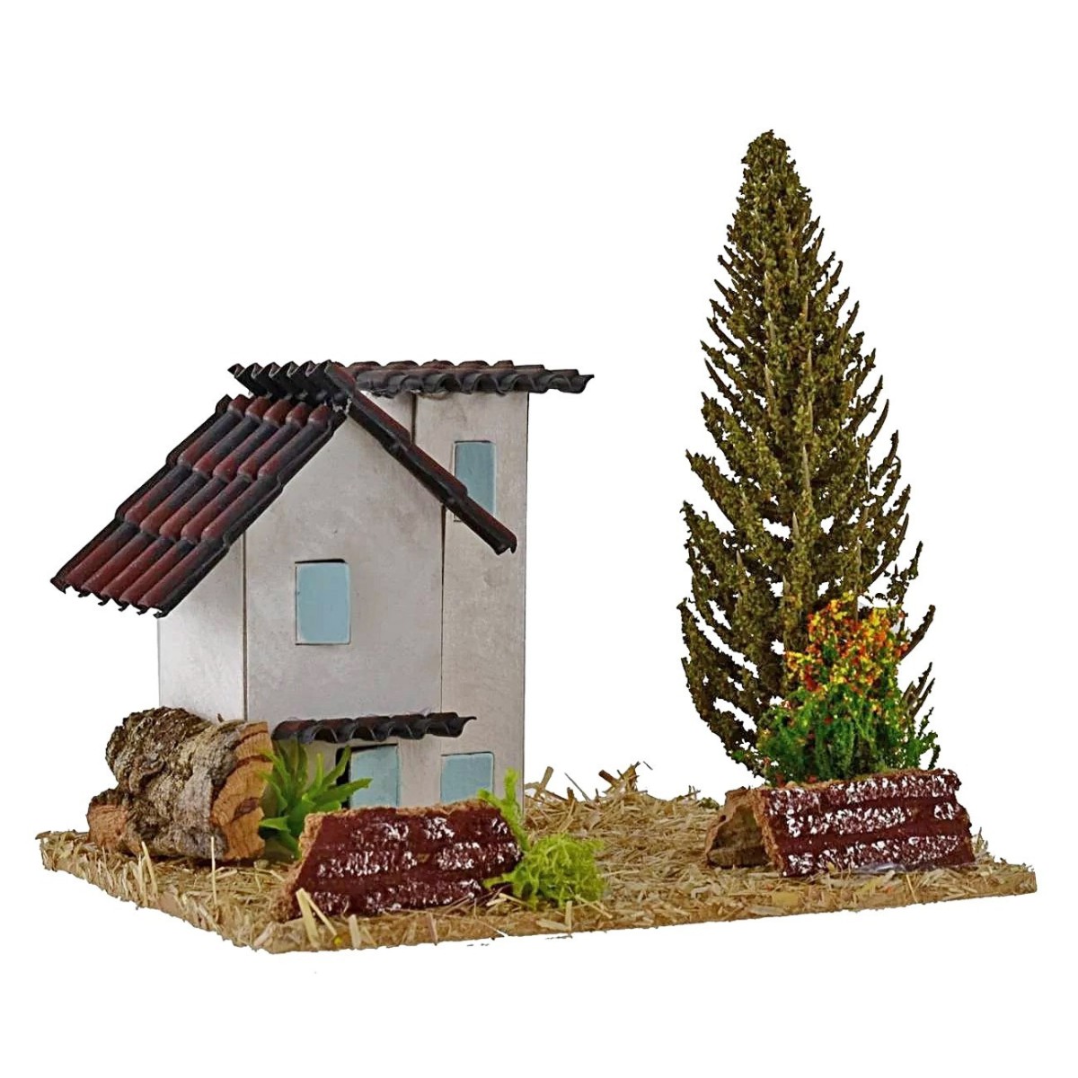 Setting with houses and a tree that you can use to create the depth effect in your crib. Article produced in Italy with wood, cork and moss.