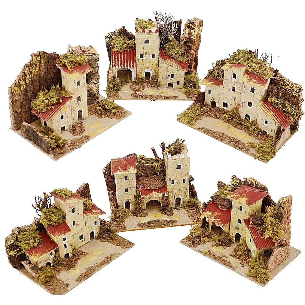 Set of 6 small houses for nativity scenes, ideal for creating the landscape in the distance. The houses can be illuminated by drilling the back to insert your light.