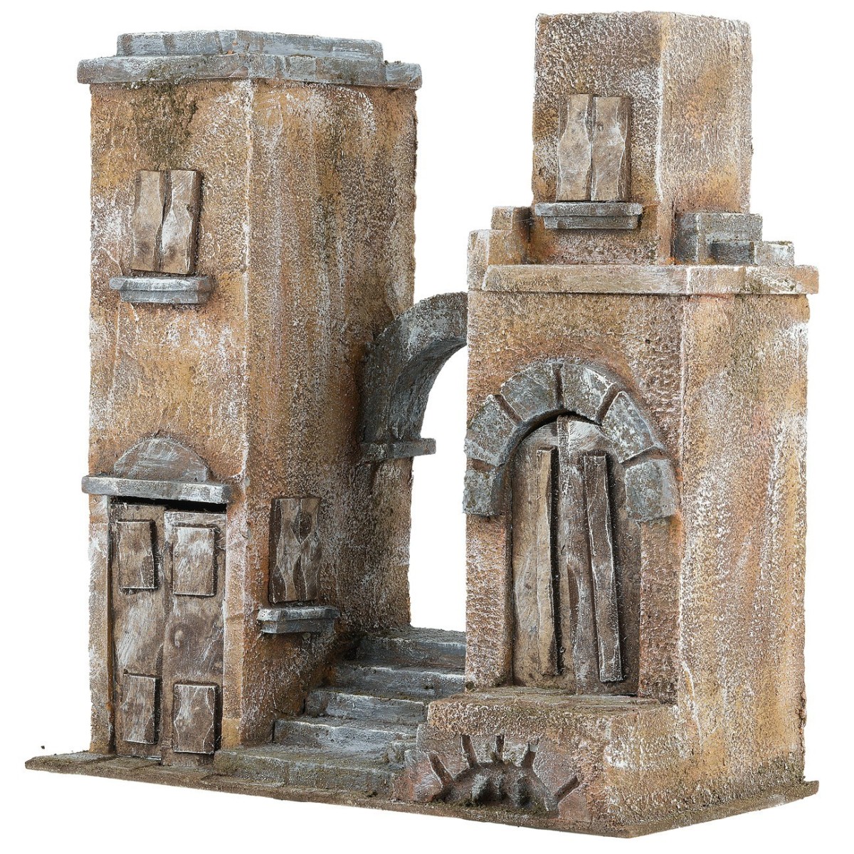 Palazzo in stile arabo diviso in due parti. La parte sinistra e destra costituite dall'edificio vero e proprio, ricco di diversi dettagli come porte, finestre, piccoli mattoni. La parte centrale che collega le due strutture è formata da un arco ed una scalinata. Si consiglia l'utilizzo di statue di altezza 8-10 cm; questo articolo è stato realizzato interamente in Italia da sapienti mani artigiane, utilizzando il polistirene, il sughero e il legno.
