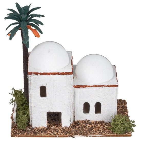 Small Arab house with central tower topped by a white dome and flanked by a palm, recommended for creating village sceneries in the distance in the nativity scene.