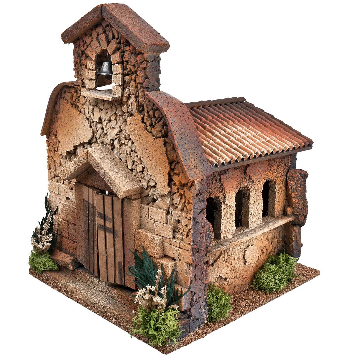 Cork church with bell tower and door, recommended for figurines 8-10 cm in height.