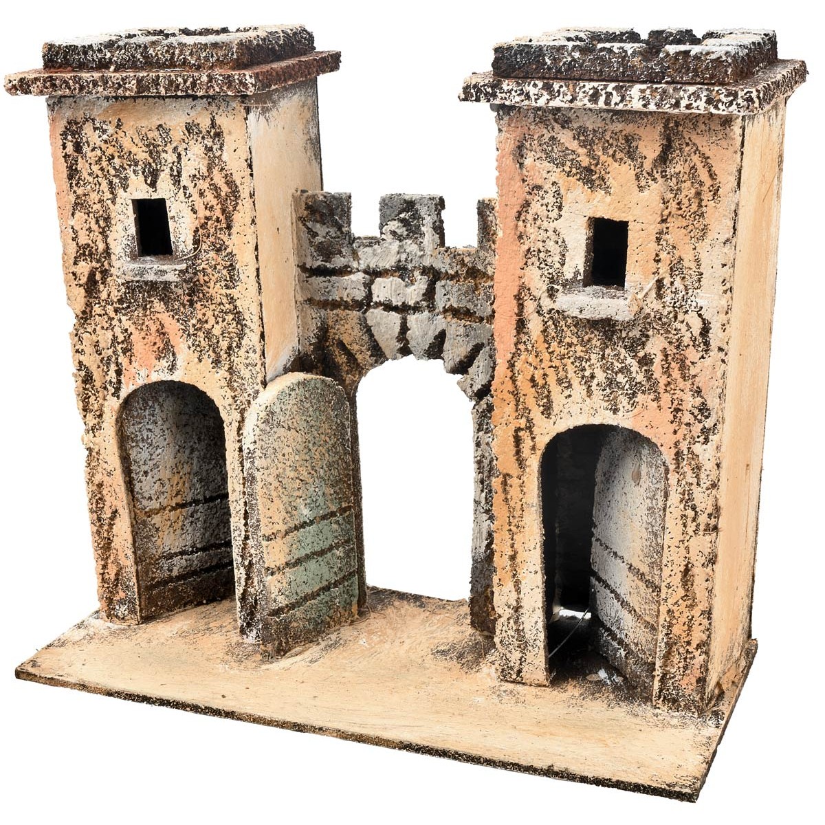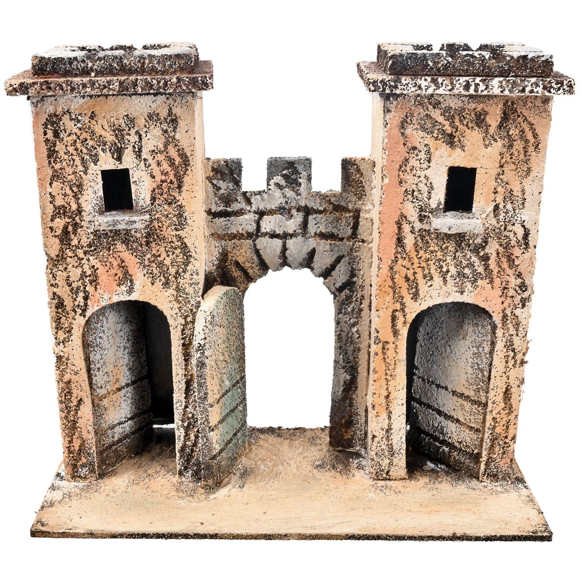 Fortified arch with side towers for nativity scene, suitable for figurines of height 5-6 cm.