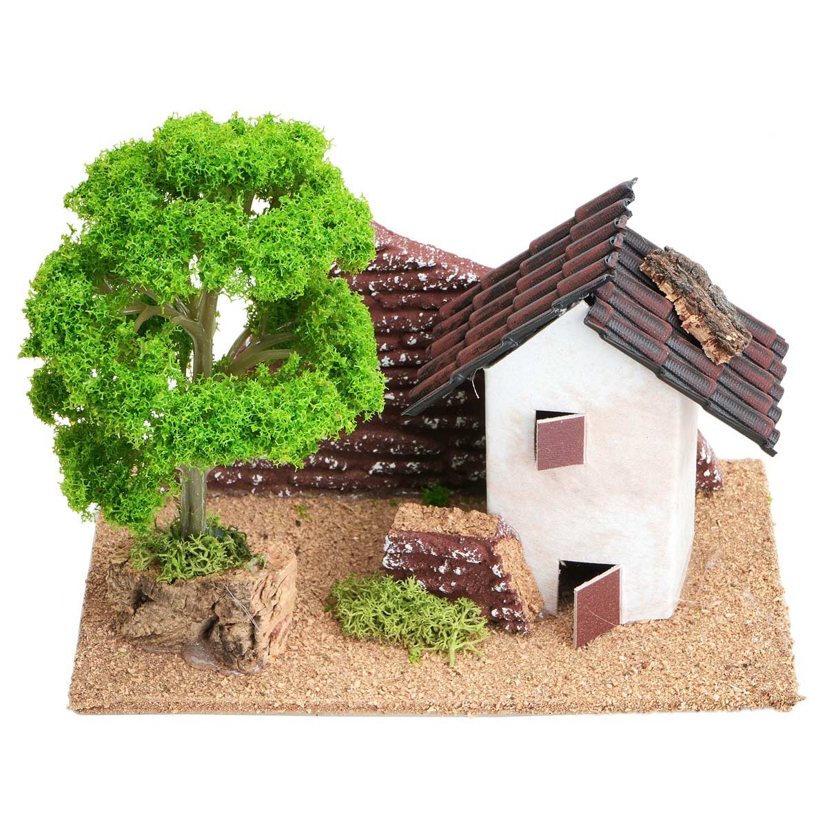 House with tree and small wall, to use for creating the depth effect within the nativity scene.