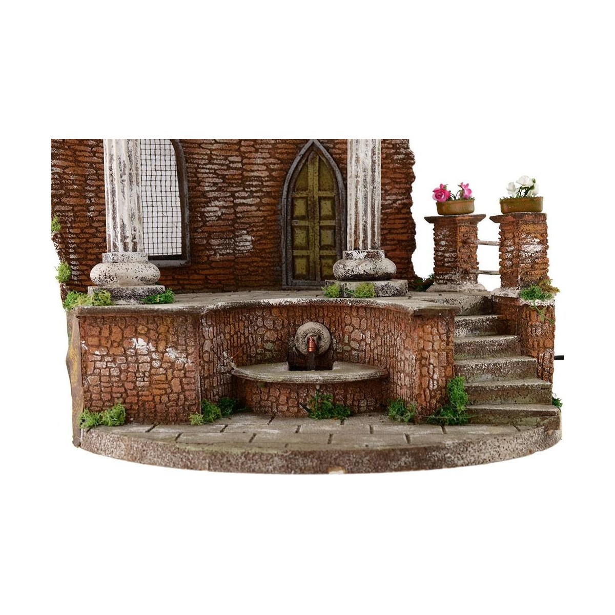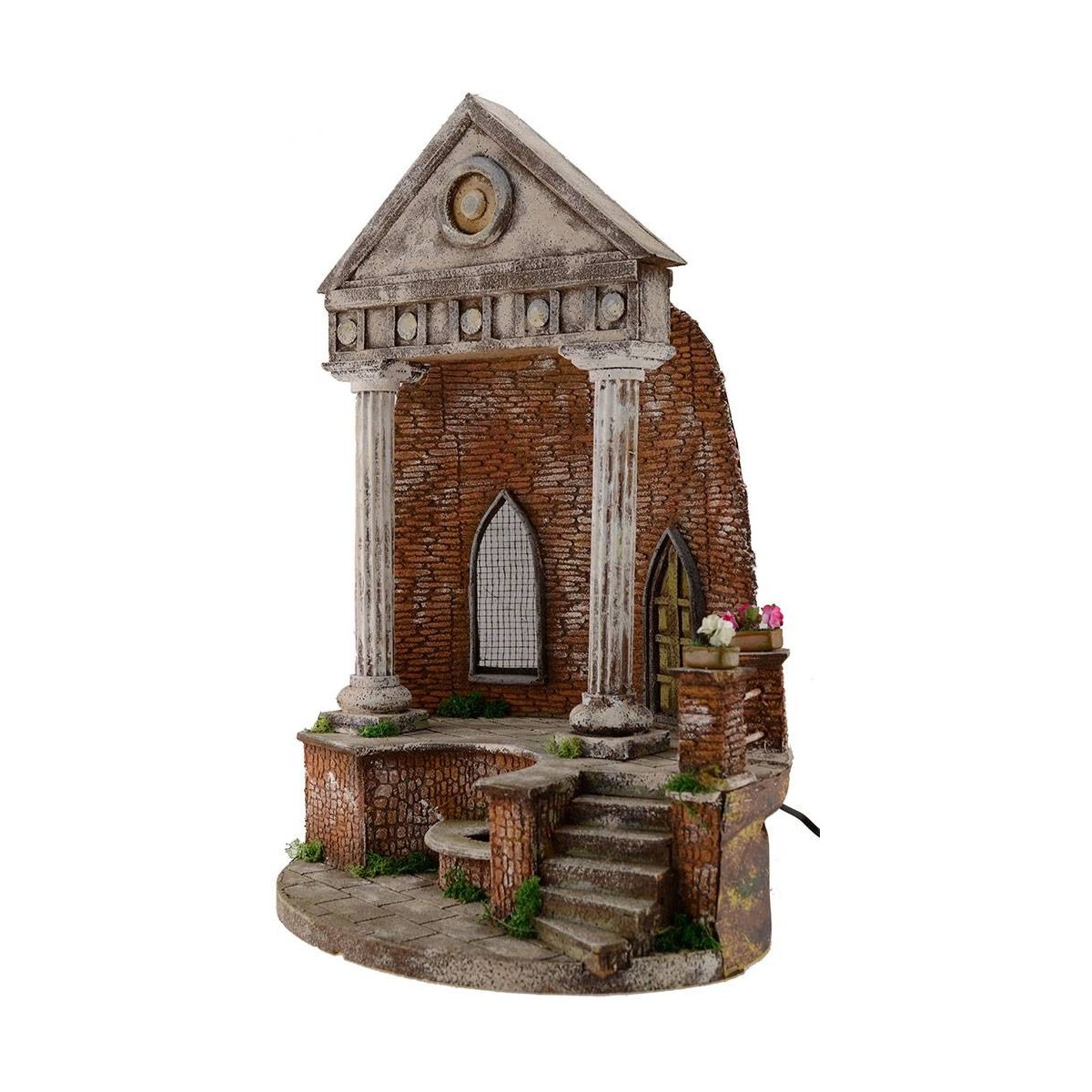 Roman Temple for presepe, made artisanally in wood and cork, with fountain functioning at current.
