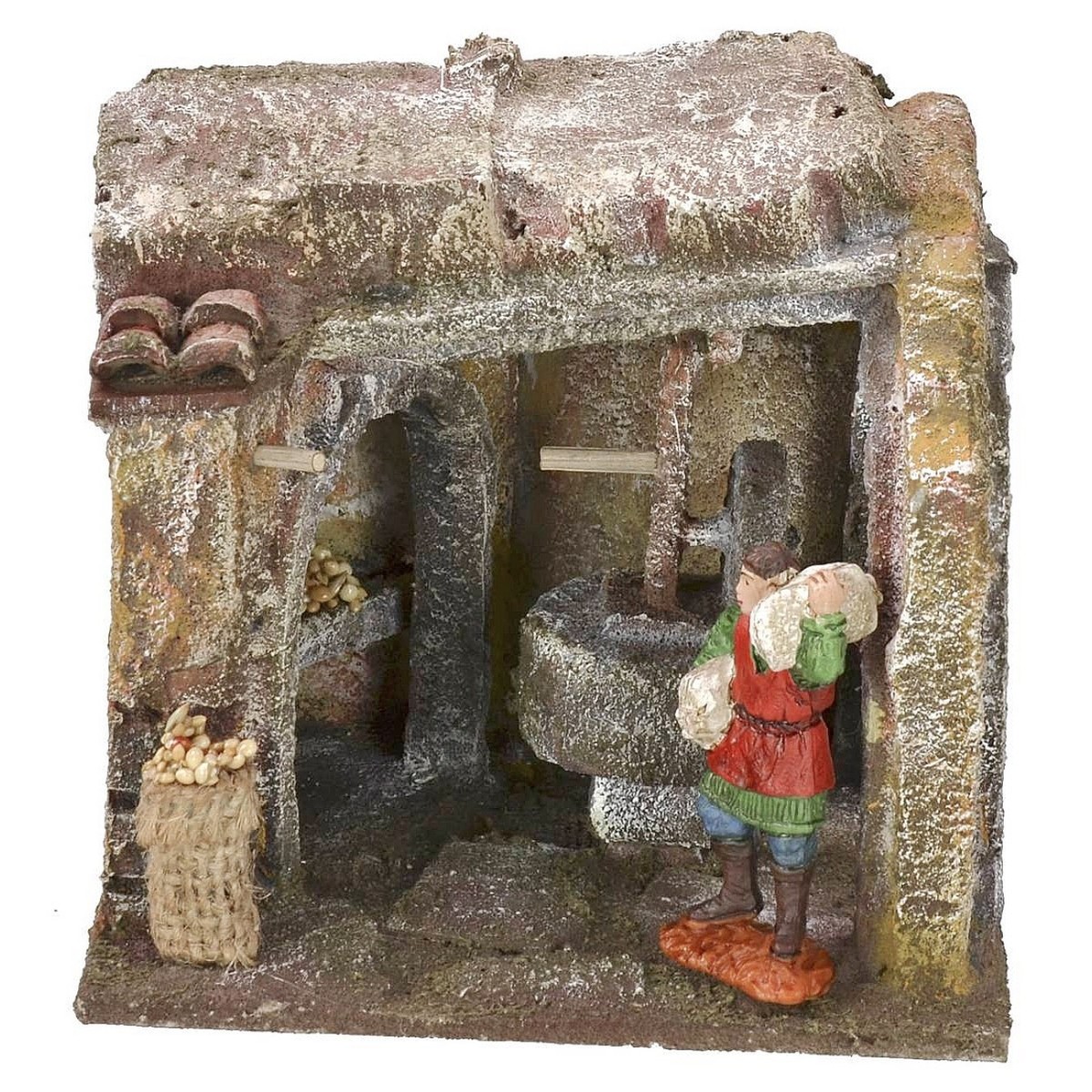 Setting with miller's mill very realistic and well finished with different accessories. The scene can be customized with additional small parts available in the homonymous category. The structure is well proportioned and particular, given that inside it has an arch which leads to a warehouse with sacks of grain. Created by skilled Italian craftsmen in polystyrene and wood for 6 h cm statues as shown in the demonstrative image, some of which are proposed in related products.