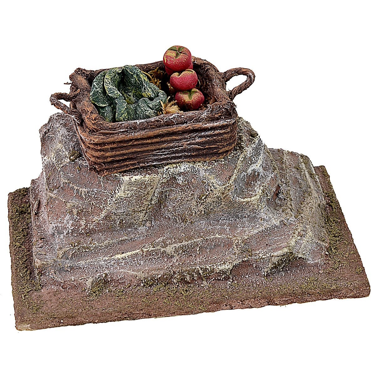 Boulder with vegetable box positioned above it, recommended for statues 10 cm high.