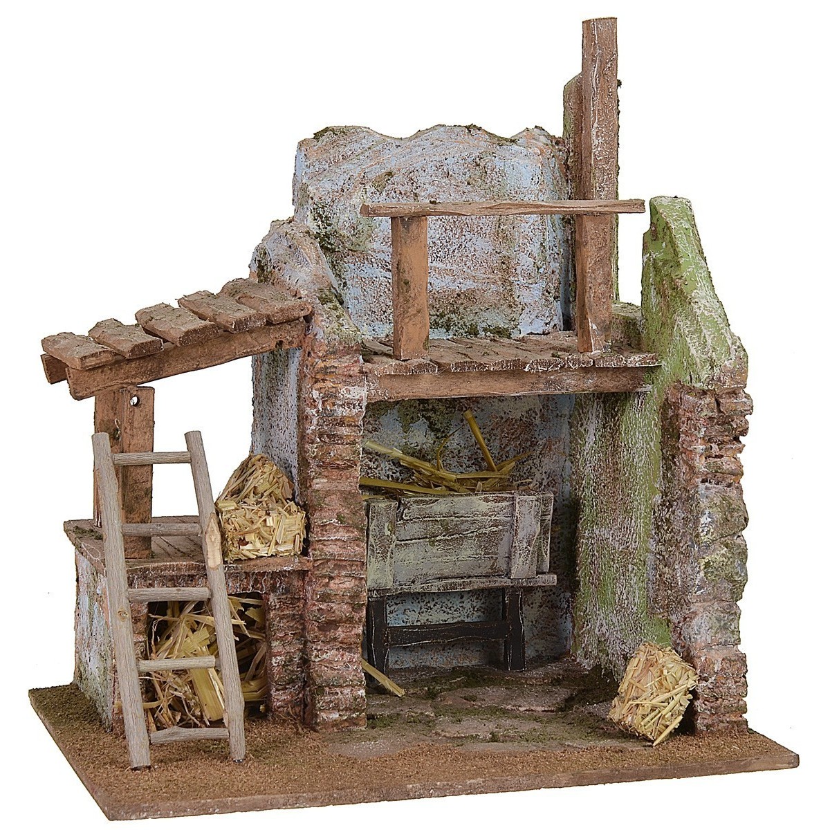 Two-level barn with staircase, a feeding trough to the right and an open terrace upstairs. Very particular piece to make your Nativity scene unique, created by skilled Italian craftsmen in polystyrene and wood. The article is suitable for statues of 10 cm height.