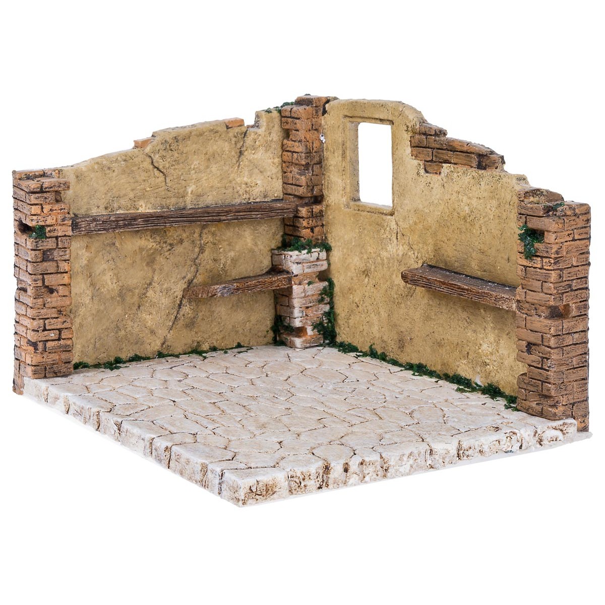 It is made of hand-painted resin, well finished by master craftsmen with exposed brick walls and stone floor.