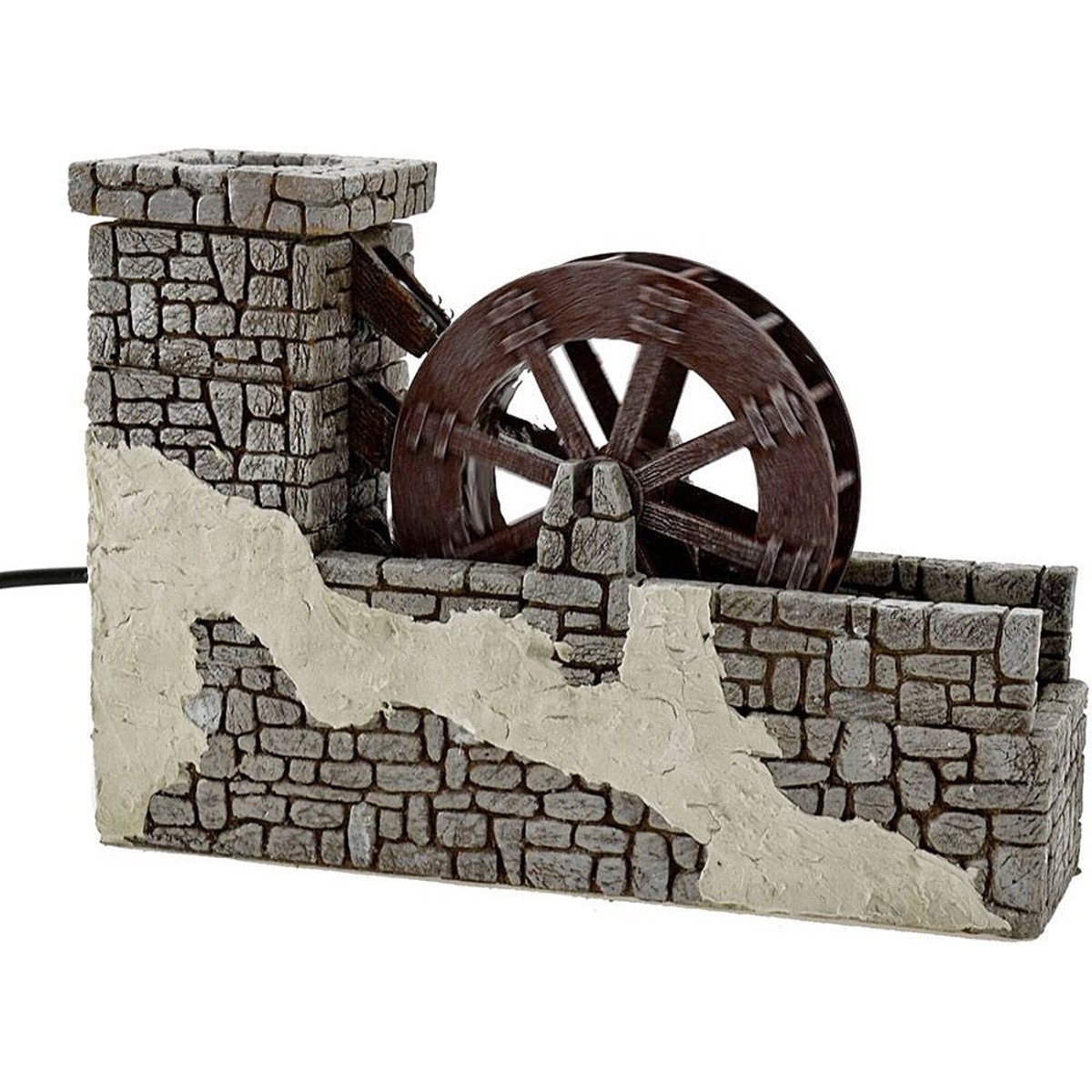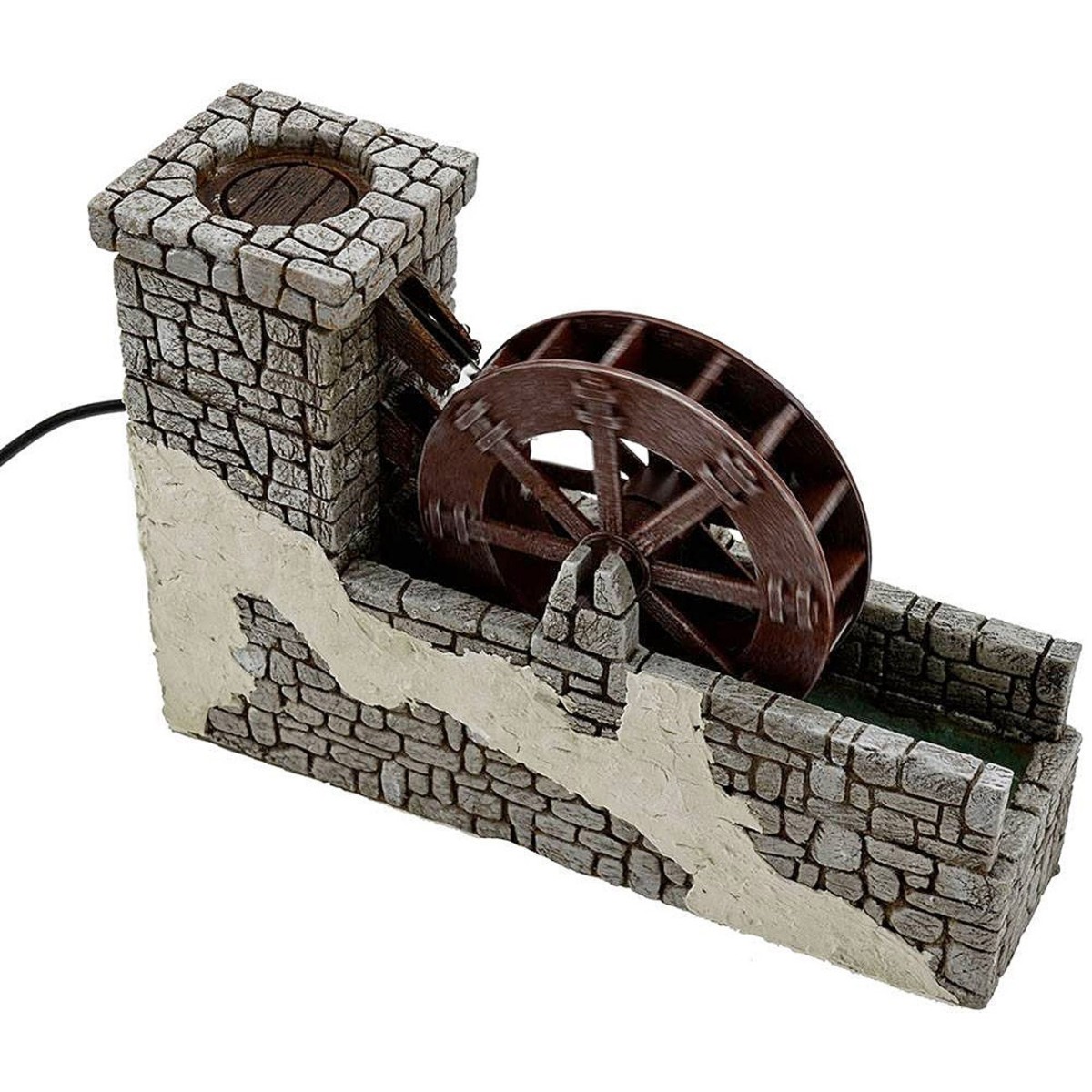 Working water mill complete with pump, in hand painted resin, running on current. Given its small overall dimensions, as well as being used individually, it can be stacked on a house.