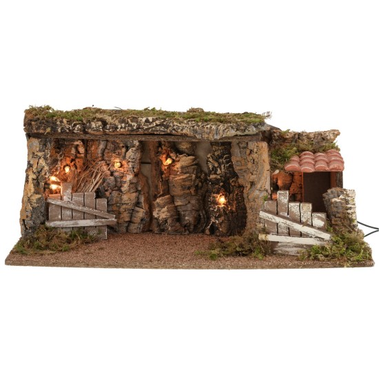 Shack with working lighting and millstone powered by electricity. Inside there is a corner manger and a doorway. The item has been handcrafted by Italian artisans. It is recommended to use the Landi Moranduzzo figures from the 10 cm series, which can be purchased in the related products, listed below the table.