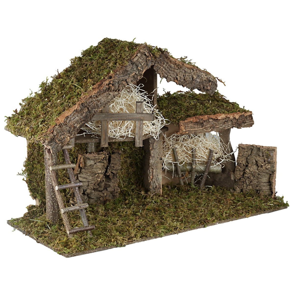 Artisanal hut, ideal for Nativity scenes with a height from 20 to 24 cm, is produced in Italy with wood, cork, and moss, materials that give it a traditional appearance.