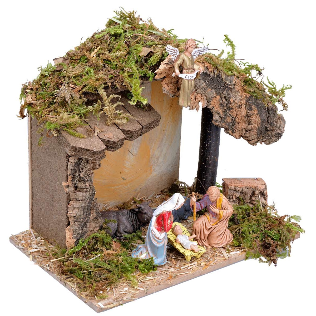 The scenery features a hut open at the front, with an irregular roof finished in cork and moss and a side canopy that adds greater depth to the Nativity setting.