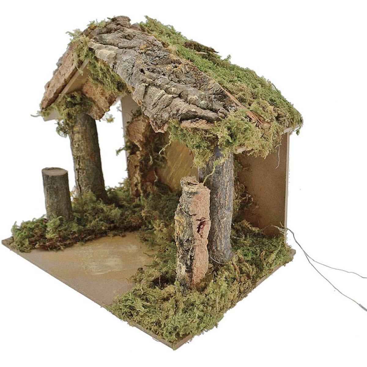 Capanna in legno, sughero e muschio con luci a led bianco caldo, funzionanti a pile (3xAA non incluse).