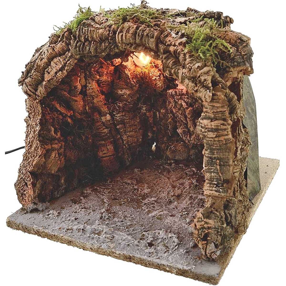 Grotta artigianale in sughero illuminata con luce funzionante a corrente, consigliata per statue presepe altezza 10 cm. Nei prodotti correlati vi elenchiamo alcune Natività proporzionata alla grotta.