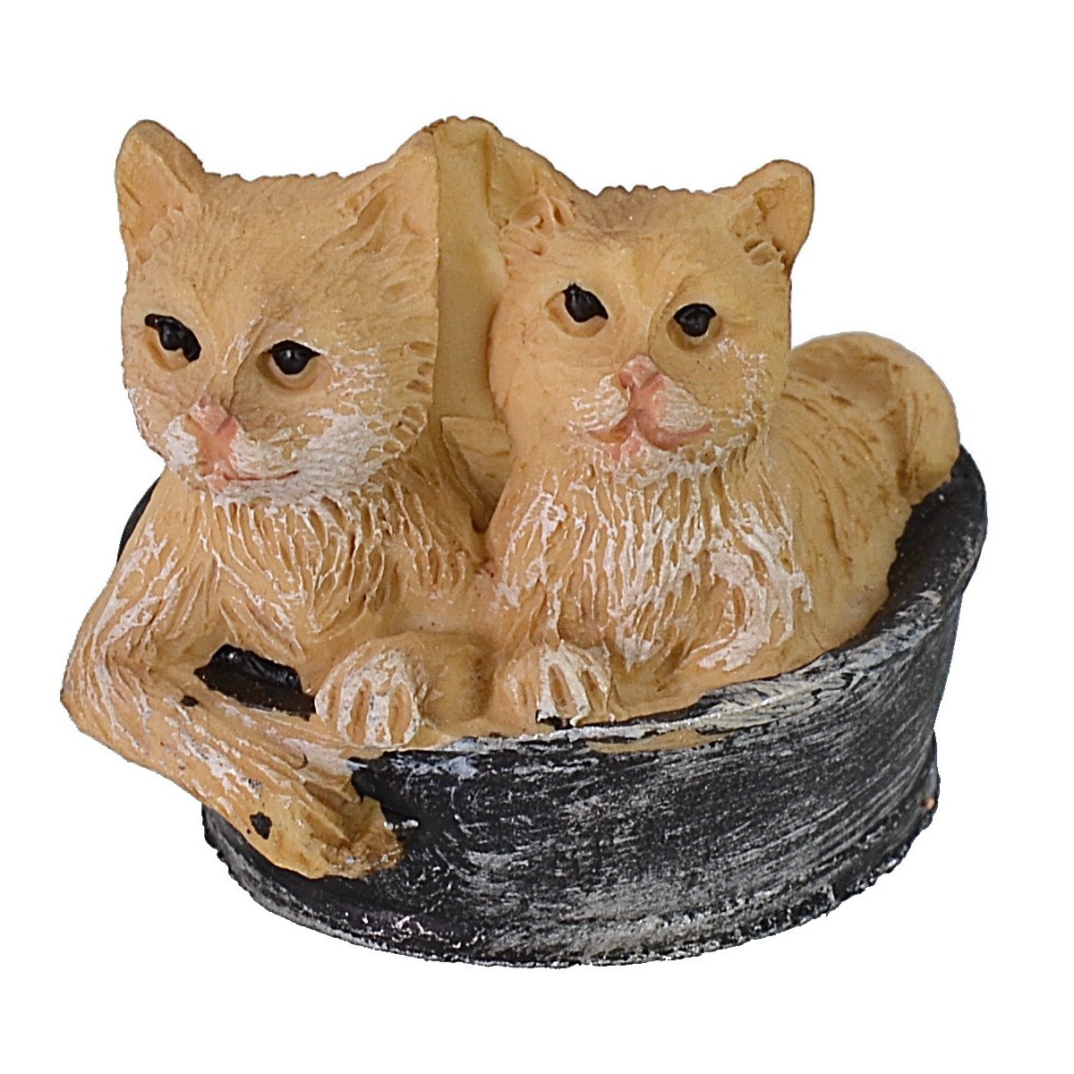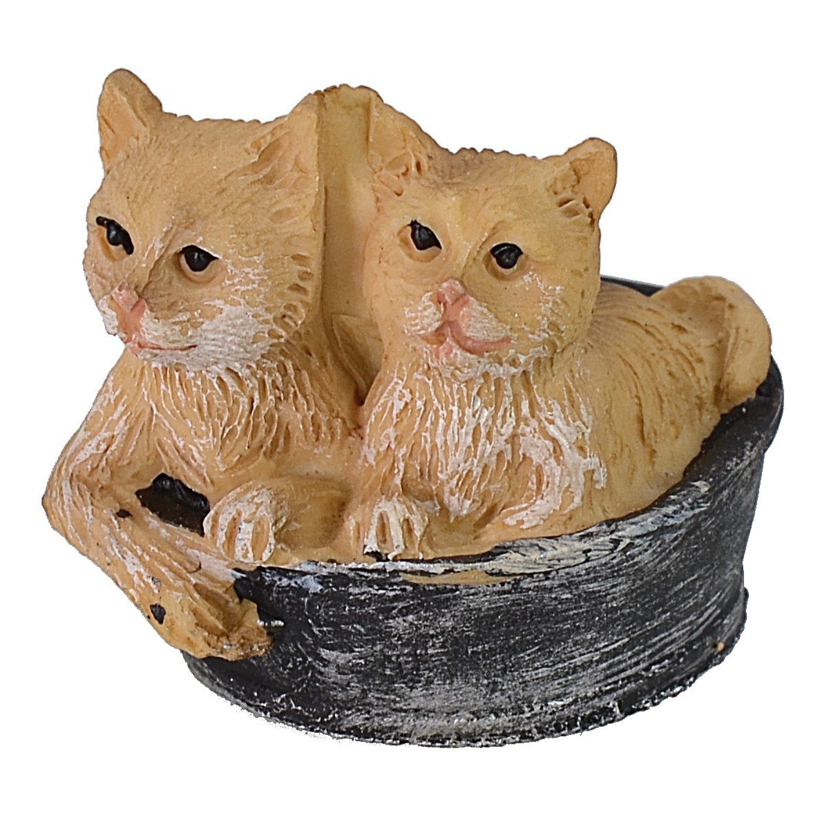 Two champagne colored kittens crouched in the basket, recommended for 10-12cm tall statues.