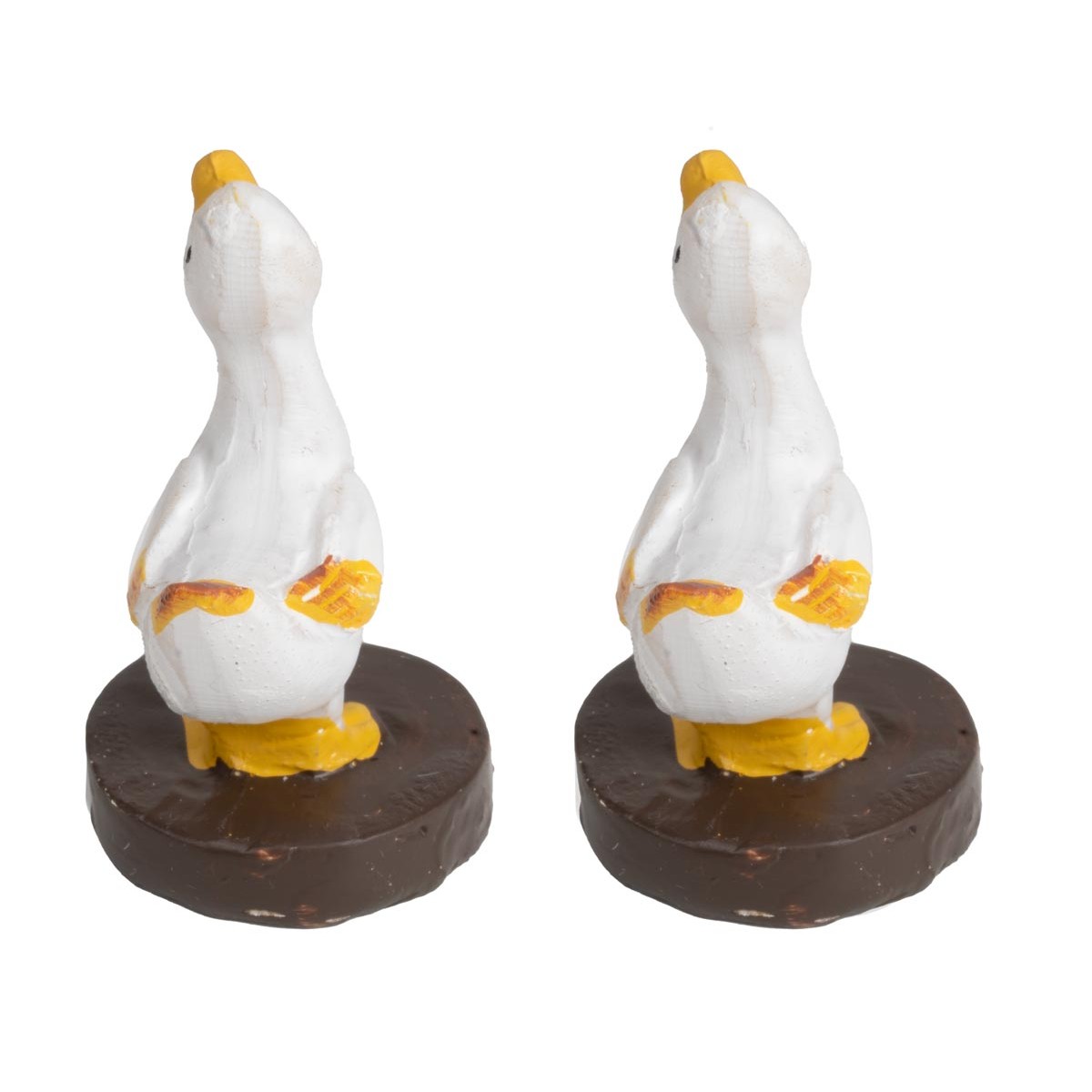 Set of 2 miniature ducks resting on a circular brown base, with white body and orange details. These meticulous replicas are recommended for 10 cm Naif figurines and are perfect to enrich nativity scenes and dioramas with a touch of nature and color.