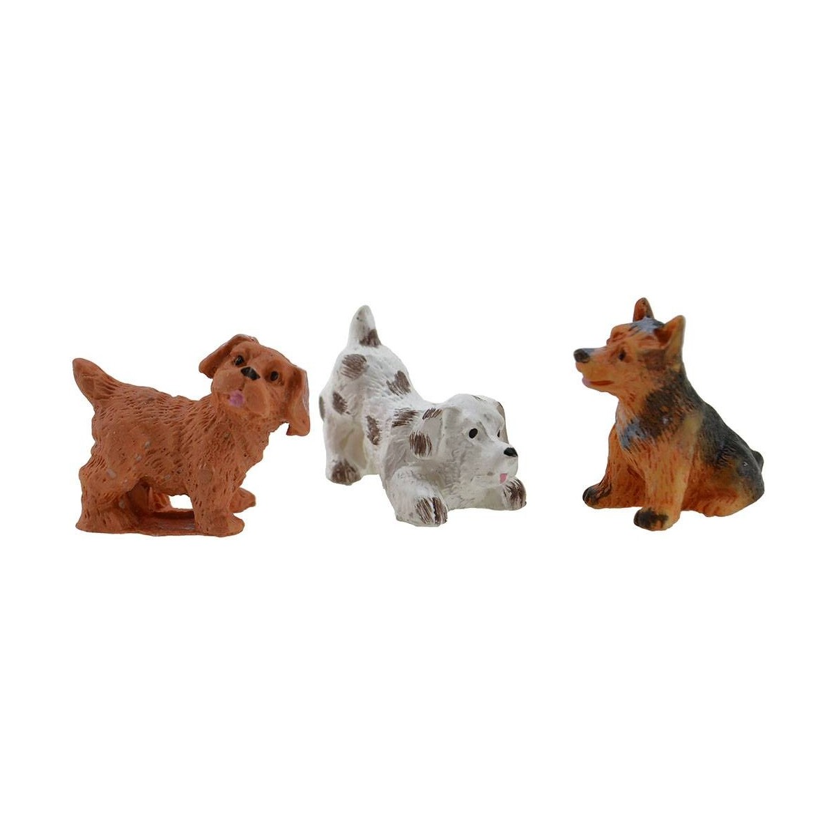 Set 3 cani in colori assortiti, in resina dipinti, consigliati per statue altezza 8-10 cm. I cani presenti nel set sono assortiti e possono variare rispetto alla foto.