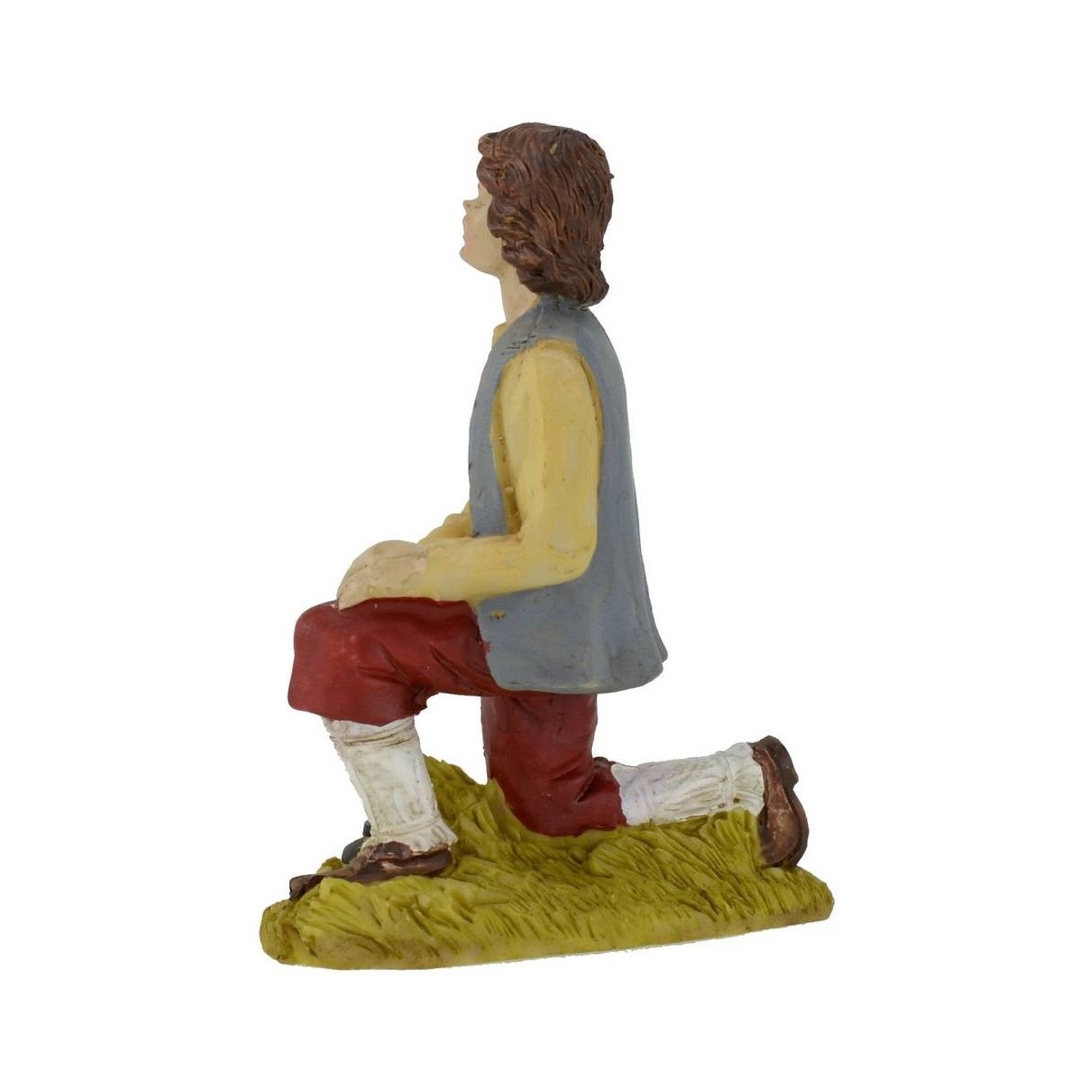Kneeling shepherd with hat at his feet, series height 15 cm in resin.