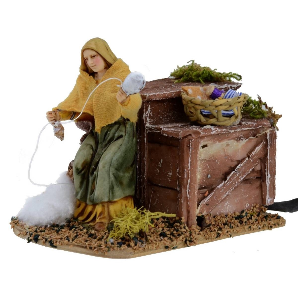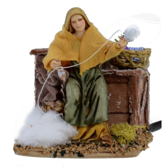 Woman in motion that row the wool series 10 cm Landi Moranduzzo. Statue realized in Italy, well refinished in detail with cloak in fabric and very expressive face. Statuine suitable for the Presepe.
