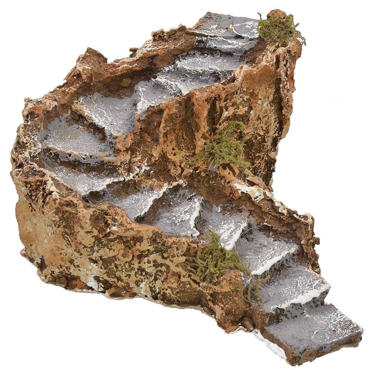 Staircase for nativity scene with a right curve made of resin with a stone effect.