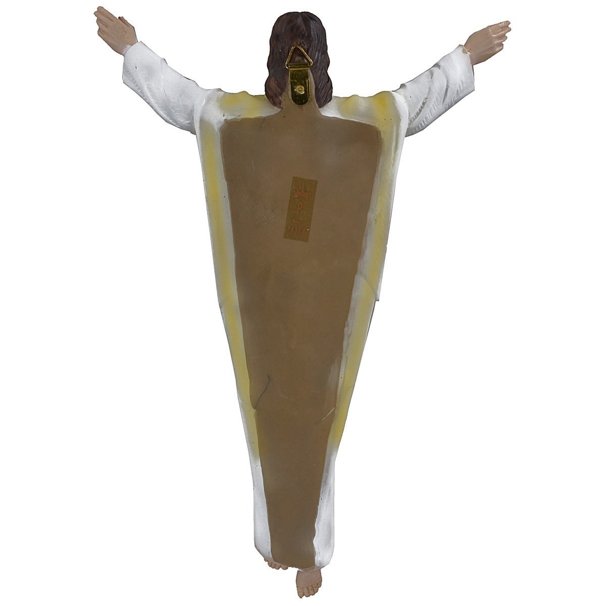 Splendida raffigurazione di Gesù risorto realizzato interamente in resina colorata con colori tenui. Prodotto di ottima fattura e ben rifinito, confezionato in scatola di cartone litografato.