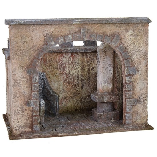 Ambientazione che rappresenta la flagellazione di Cristo . La scena si sviluppa in un tribunale e la grande parete ad arco ci permette di vedere la colonna a cui venne legato e flagellato Gesù e la poltrona in pietra del giudice  L' ambientazione è adatta a statue di altezza di 9 cm o 10 cm disponibili nei prodotti correlati, la scenografia viene venduta vuota senza statue e le immagini complete hanno uno scopo puramente illustrativo. L'articolo è stato prodotto in Italia da sapienti mani artigiane con polistirene, legno e sughero.