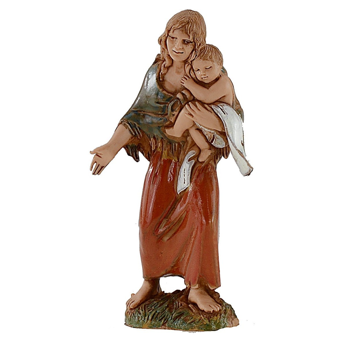 Donna con neonato tra le braccia stile Napoletano serie 10 cm Landi Moranduzzo. Si precisa che la sopracitata serie misura realmente circa 8,5-9 cm di altezza. Le statue di questo marchio si caratterizzano per la cura nell'espressività dei volti e di ogni singolo dettaglio, infatti tutte le serie firmate Landi sono prodotte e dipinte a mano in Italia.