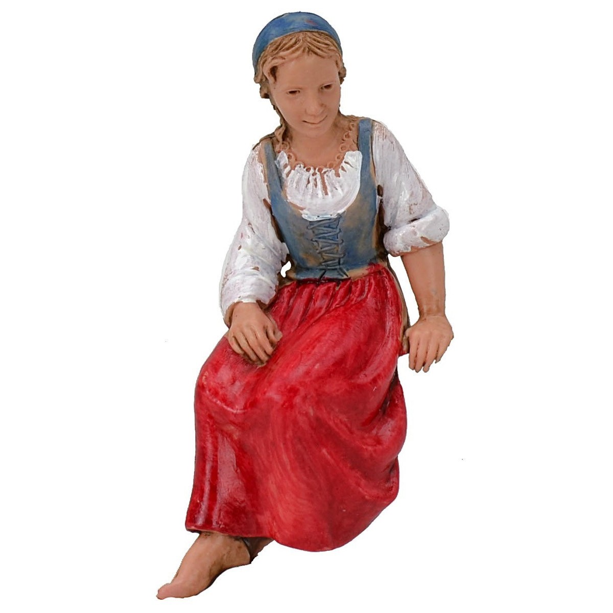 Contadina in posizione da seduta ideale per sedie o panchine serie 10 cm Landi Moranduzzo. Si precisa che la sopracitata serie misura realmente circa 8,5-9 cm di altezza. Le statue di questo marchio si caratterizzano per la cura nell'espressività dei volti e di ogni singolo dettaglio, infatti tutte le serie firmate Landi sono prodotte e dipinte a mano in Italia. Nei prodotti correlati sotto la tabella sono presenti gli articoli usati per le foto dimostrative.