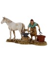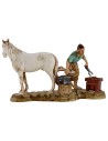 Scene with farrier shoeing the horse series 10 cm Landi Moranduzzo. It should be noted that the aforementioned series actually measures about 8.5-9 cm in height. The statues of this brand are characterized by the care in the expressiveness of the faces and of every single detail, in fact all the series signed by Landi are produced and painted by hand in Italy.