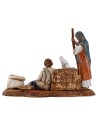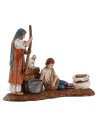 Scene with a woman with a pestle, a boy sitting on a carpet and a cat watching from a low wall 10 cm series Landi Moranduzzo. It should be noted that the aforementioned series actually measures about 8.5-9 cm in height. The statues of this brand are characterized by the care in the expressiveness of the faces and of every single detail, in fact all the series signed by Landi are produced and painted by hand in Italy.