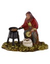Seated woman roasting chestnuts, scene for Landi Moranduzzo series nativity scene 10 cm. It should be noted that the aforementioned series actually measures about 8.5-9 cm in height. The statues of this brand are characterized by the care in the expressiveness of the faces and of every single detail, in fact all the series signed by Landi are produced and painted by hand in Italy.