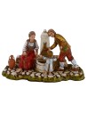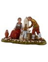 Mamma e papà con bambino alla fontana, scena per presepe serie Landi Moranduzzo 10 cm. Si precisa che la sopracitata serie misura realmente circa 8,5-9 cm di altezza. Le statue di questo marchio si caratterizzano per la cura nell'espressività dei volti e di ogni singolo dettaglio, infatti tutte le serie firmate Landi sono prodotte e dipinte a mano in Italia.