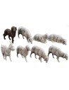 Set composto da 6 pecore in varie posture, un cane e una capra serie 10 cm Landi Moranduzzo. L'articolo è consigliato per statue di altezza 10 cm.