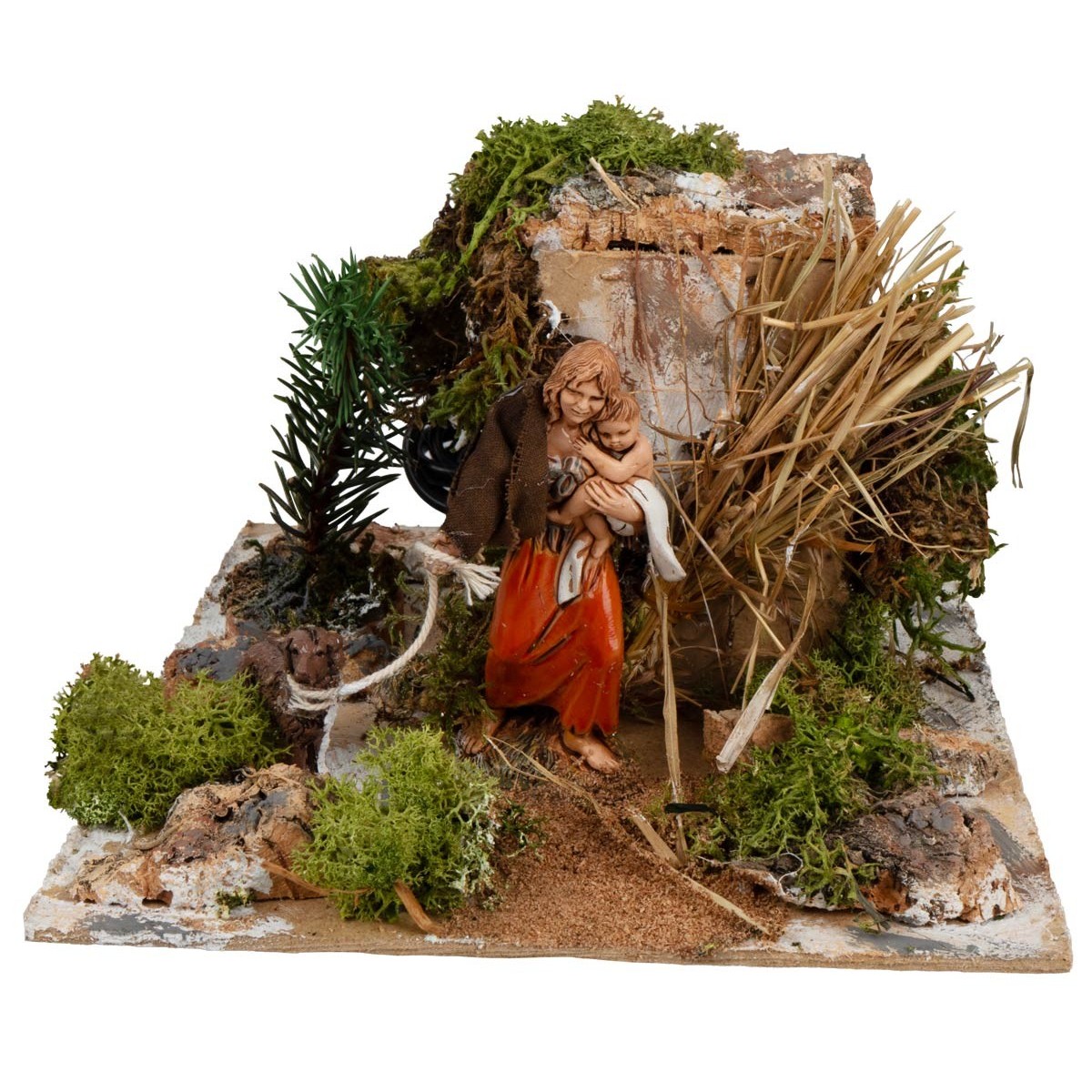 Woman with child in arms and dog on a leash 10 cm Landi Moranduzzo series in motion powered by electricity.